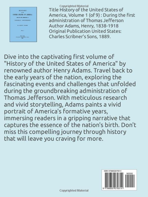 - History of the United States of America, Volume 1 (of 9): During the first administration of Thomas Jefferson